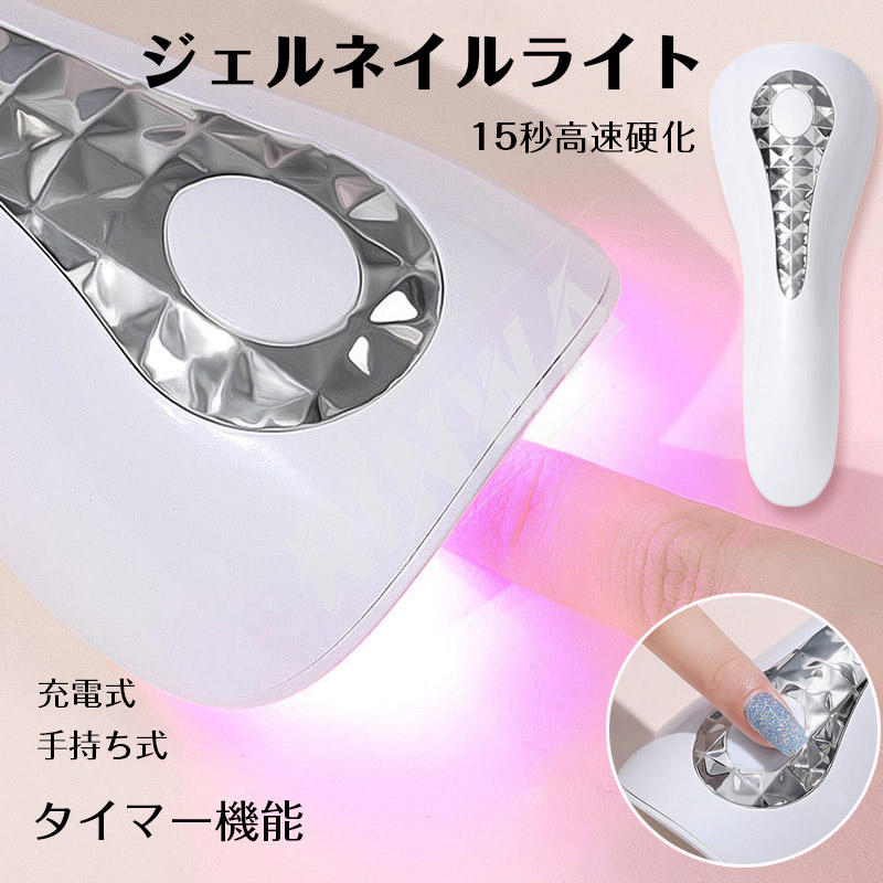 ジェルネイル & 充電式 ネイルライト 大容量 ホワイト ネイルドライヤー 仮硬化 ライト 自動感知センサー タイマー機能 ジェルネイルライト ポータブル コンパクト