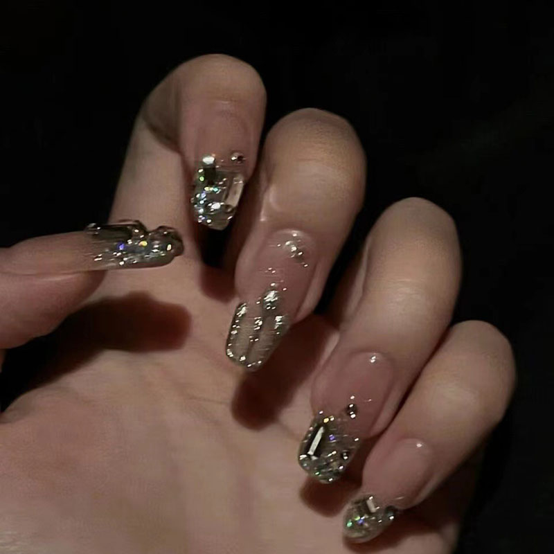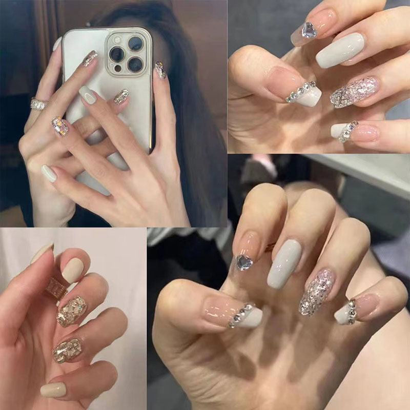 ネイルチップ キラキラ スクエア ロング つけ爪 ショート 淡い アートチップ デザインチップ 10枚入り 全4サイズ 手つくり 付け爪 各種デザイン 結婚式 披露宴 成人式 ウエディング ブライダル