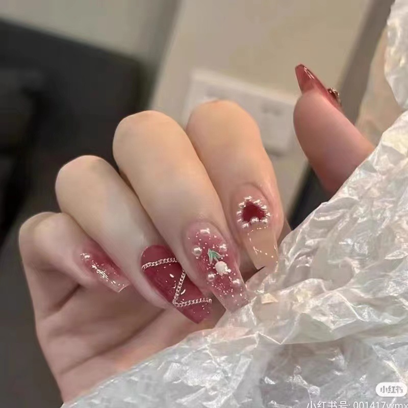 ネイルチップ 10枚入り スクエア ロング つけ爪 ショート 淡い アートチップ 全4サイズ 手つくり キラキラ デザインチップ 付け爪 各種デザイン 結婚式 披露宴 成人式 ウエディング