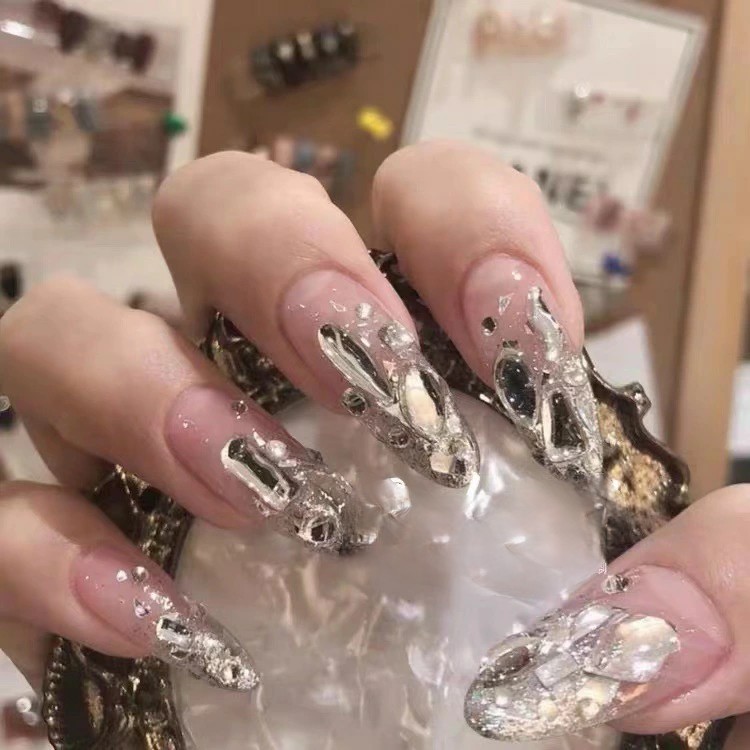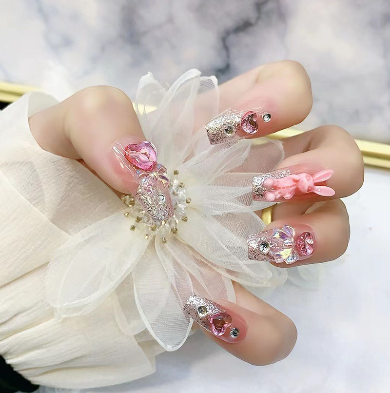 ネイルチップ 10枚入り 全4サイズ 手つくり 淡い アートチップ デザインチップ 付け爪 結婚式 披露宴 成人式 ウエディング キラキラ ハート ウサギ スクエア ロング つけ爪 ショート ブライダ