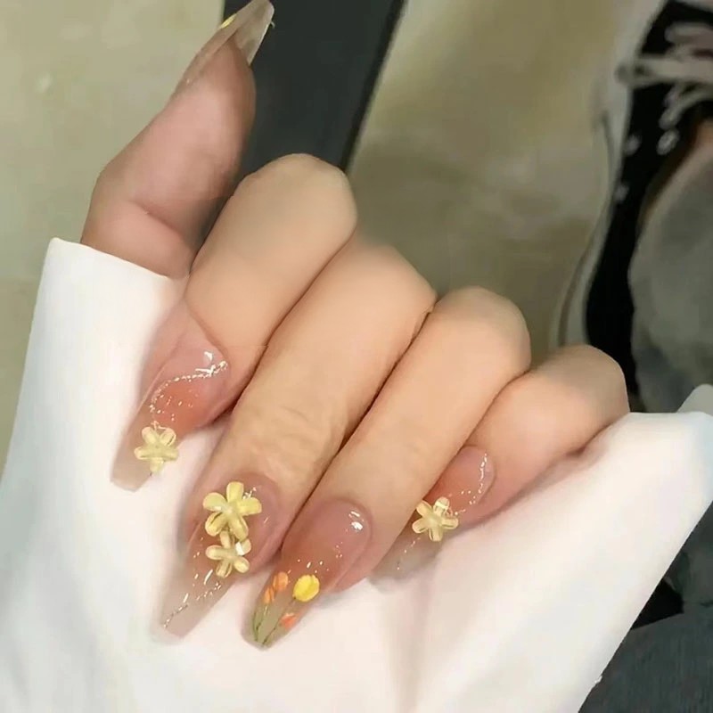 ネイルチップ 10枚入り 全4サイズ 手つくり 花 チューリップ ウエディング ブライダル ワンカラー ジェルネイル スクエア ロング つけ爪 ショート 淡い アートチップ デザインチッ