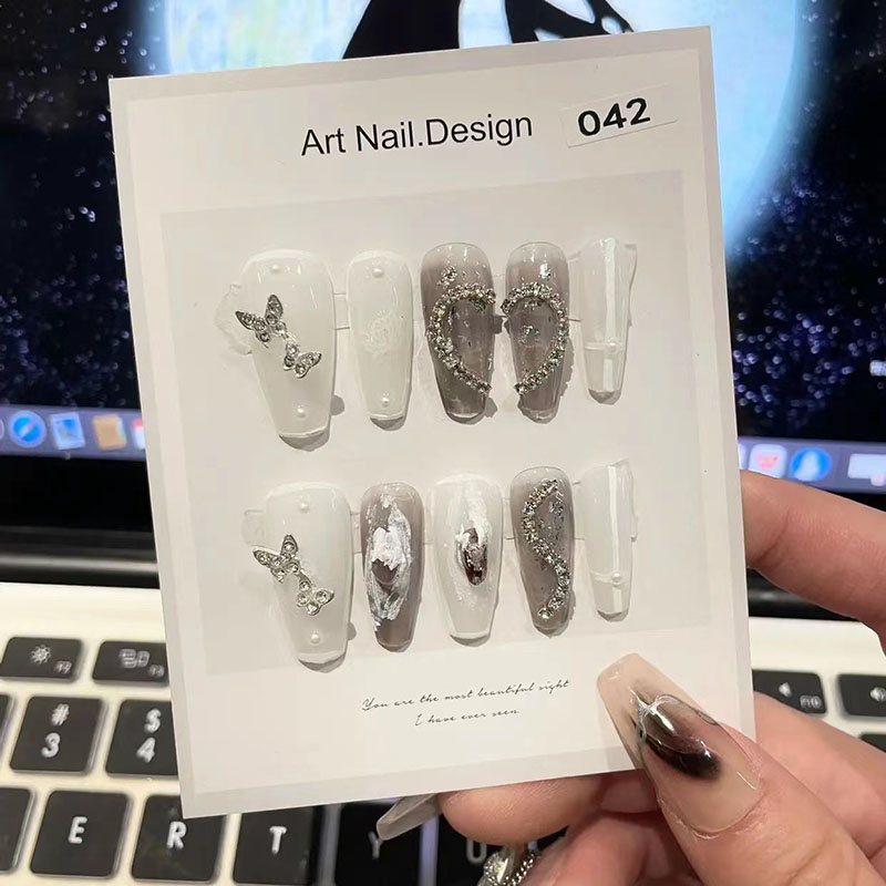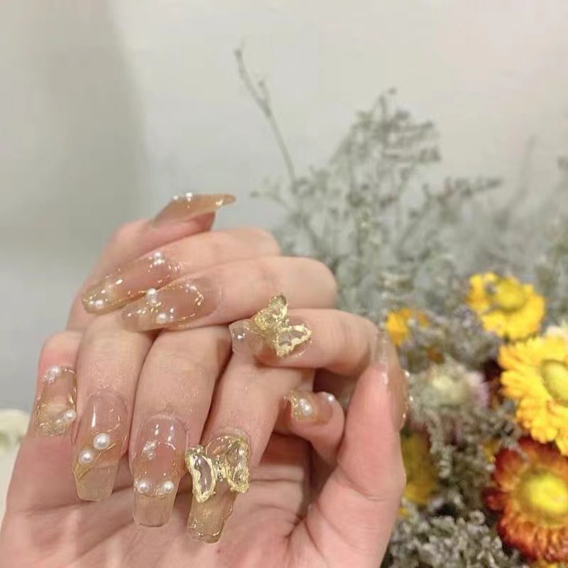 ネイルチップ 10枚入り 全4サイズ 手つくり キラキラ 蝶々 デザインチップ 付け爪 各種デザイン 結婚式 披露宴 成人式 ウエディング ブライダル スクエア ロング つけ爪 ショート 淡い アート