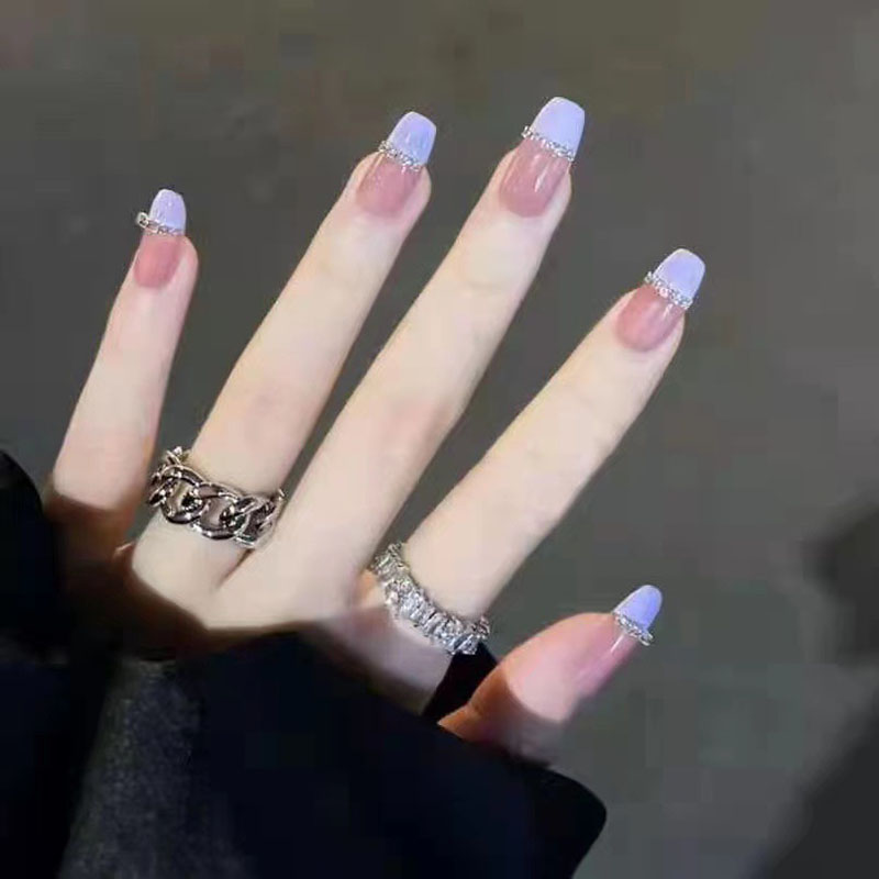 ネイルチップ 10枚入り スクエア ロング つけ爪 ショート 淡い アートチップ 全4サイズ 手つくり キラキラ blue デザインチップ 付け爪 各種デザイン 結婚式 披露宴 成人式 ウエディング