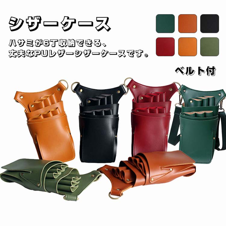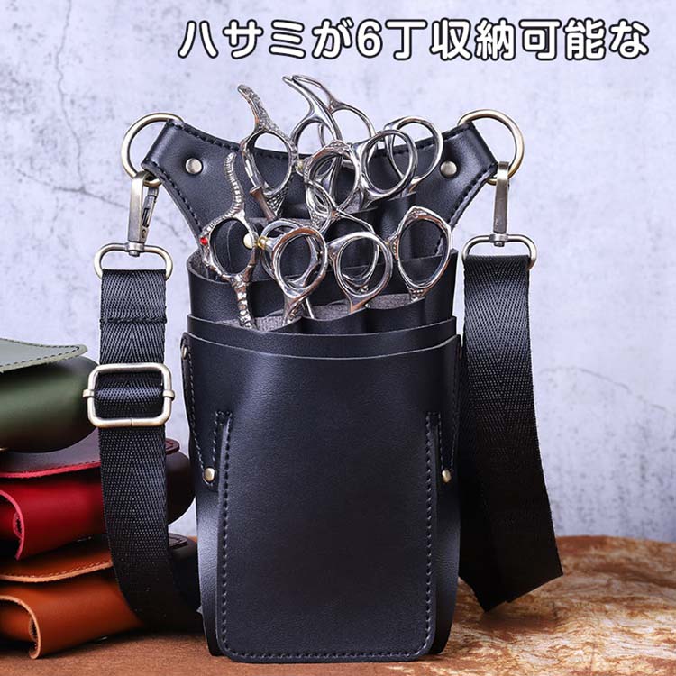 シザーケース 美容師 PUレザー ハサミ6丁収納 トリマー 軽量 レザーバッグ フラワーショップ 花屋 ハサミ バッグ フローリスト 理容師 理髪師 仕事 おしゃれ ベルト付き ベルトポーチ