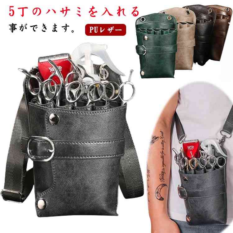シザーケース プロ用 5丁 床屋 美容師 理容師 シザーバッグ ハサミ PUレザーバッグ メンズ レディース 2way 理髪師 トリマー用 サロン ベルトポーチ 仕事 ベルト付 おしゃれ