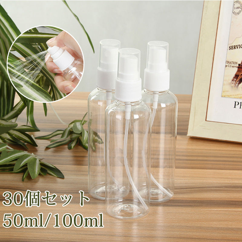 スプレーボトル アルコール対応 30個セット 小分けボトル 100ml 50ml 詰替ボトル スプレー容器 ボトル 小分け お出かけ用