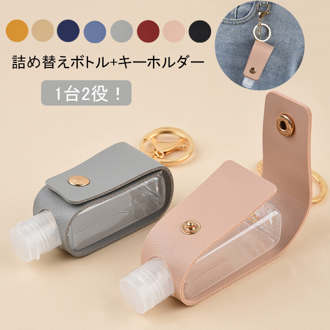 携帯 詰め替えボトル 2個セット ハンドジェルケース 30 キーホルダー 革ケース 詰め替え容器 持ち運び便利
