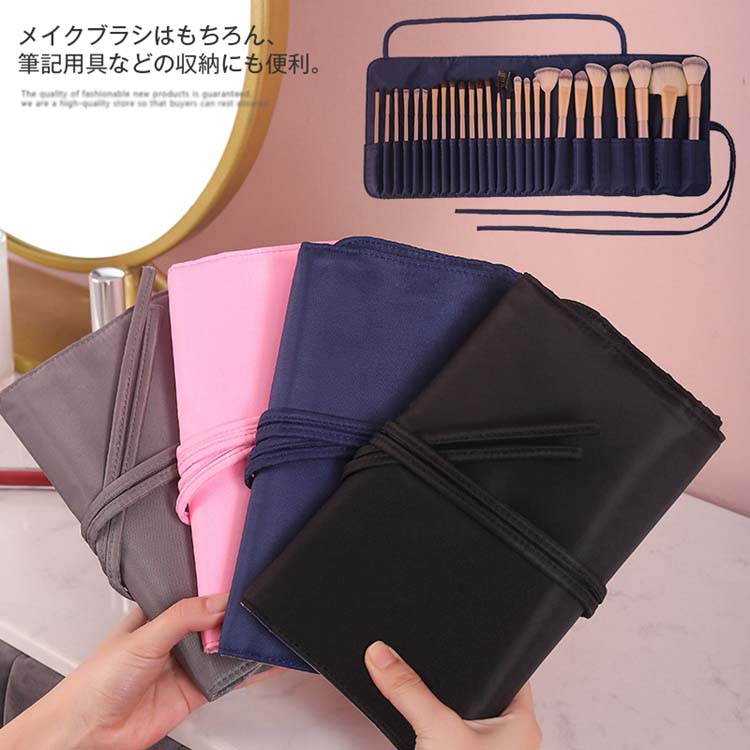 化粧ポーチ ブラシケース コスメポーチ メイク収納 スリムタイプ デニム ドット ブラシ入れ コスメ収納 仕分け メイクブラシ ポケット コンパクト メイクブラシ