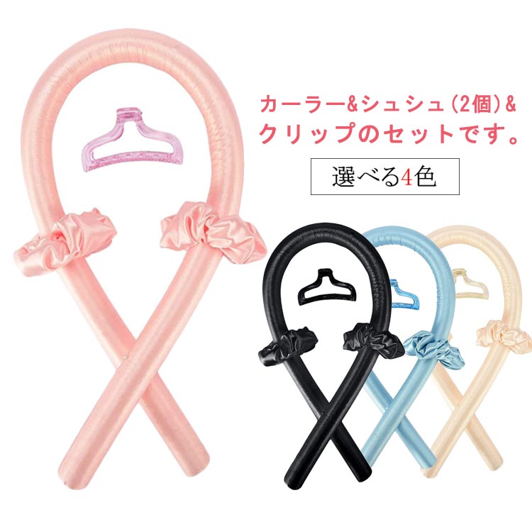 4点セット 手巻きカーラー ヘアカーラー ヒートレス カールバンド 髪カール カーリングロッド スタイリング 熱を使わない ヘアローラー ノンヒートカール 寝ながら ヘッドバンド ロングヘア ヘアクリ