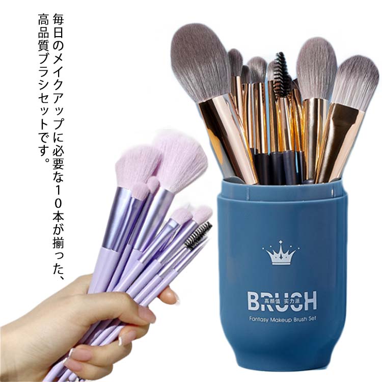 メイクブラシ10本セット ポーチ付き 化粧ブラシ パウダーブラシ ファンデーションブラシ アイブロウブラシ 柔らかい かわいい スターターキット 斜めカット ぼかし 収納 オシャレ かわいい ブルー