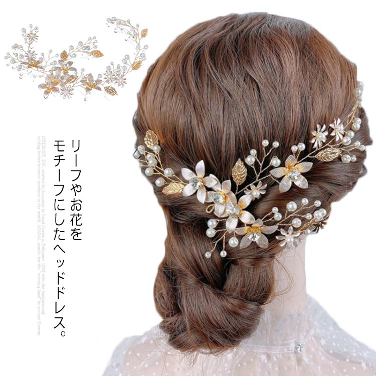 ヘッドドレス ウェディング 小枝アクセサリー ブライダル 髪飾り リーフ パール 葉 フラワー 結婚式 花嫁 披露宴 パーティー ヘアアクセサリー 発表会 フォーマル 手作り ボタニカル