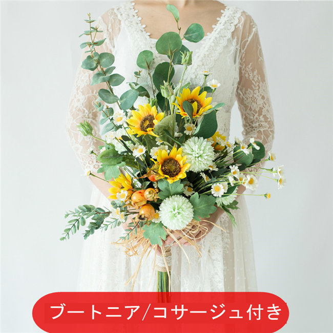 ホワイト+グリーンブライダルブーケウェディングブーケ 造花ブーケ ブライダルブーケ ラウンドブーケ トスブーケ 結婚式 花束