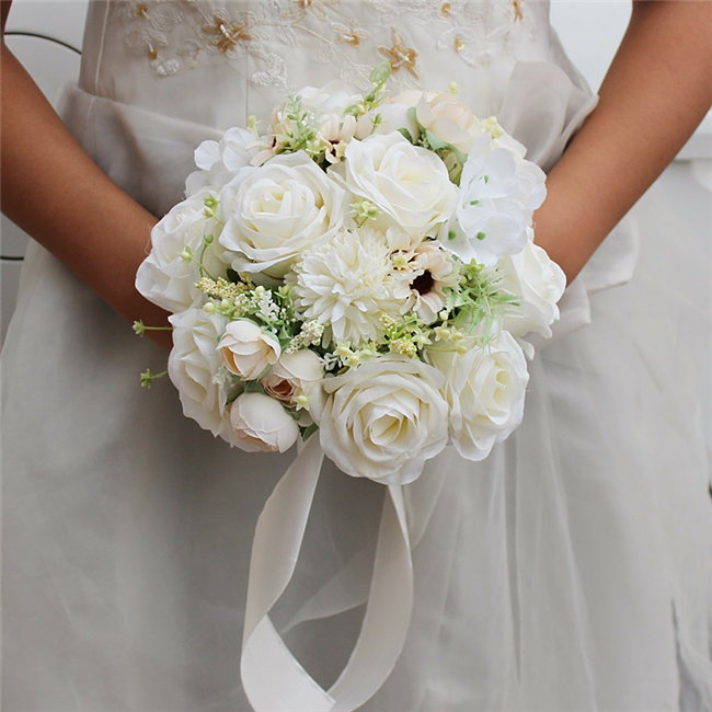 ホワイト ピンクウエディングブーケ 花嫁 ブーケ 手作り ウェディングブーケ 結婚式 ブライダルブーケ 造花 二次会 エレガント 海外挙式