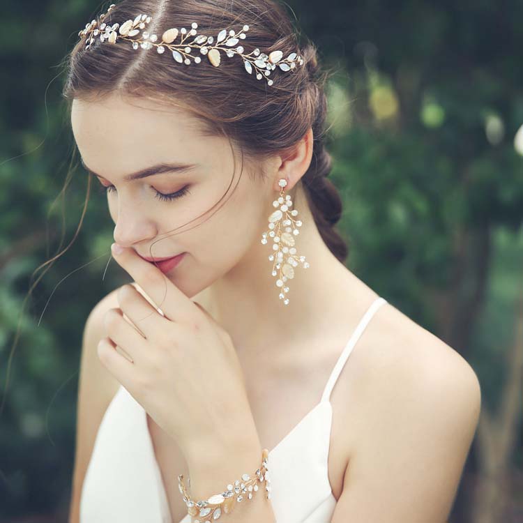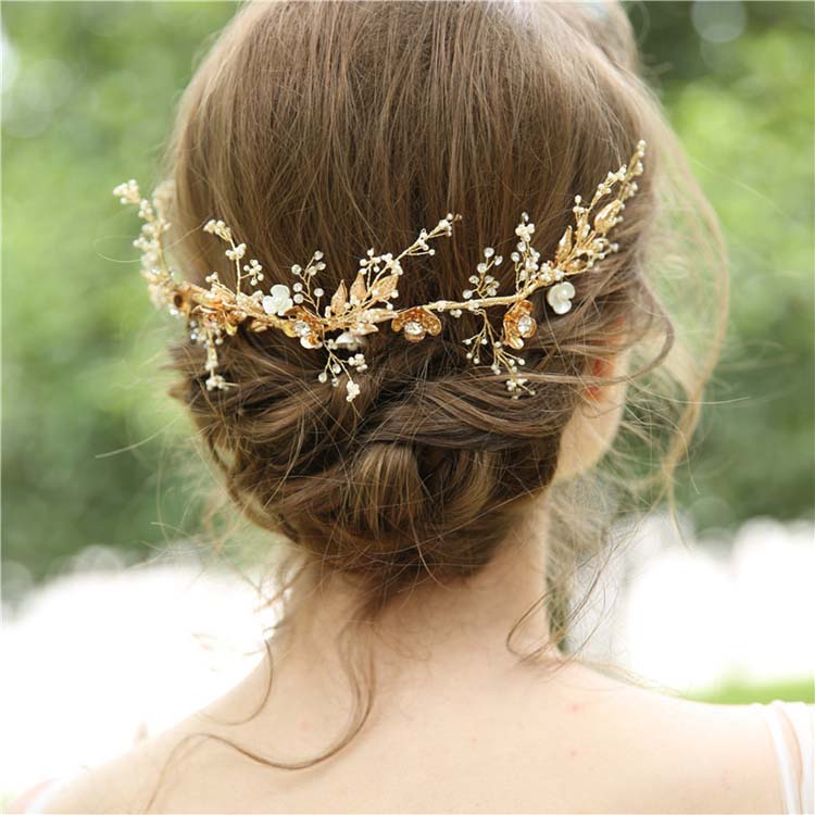 ウェディング 髪飾り 小物 ティアラ 王冠 ウェディング小物 ヘッドドレス ラインストーン 花嫁 可愛い 普段用 リーフ ゴールド ブライダル パール ヘアアクセサリー ヘッドアクセサリ