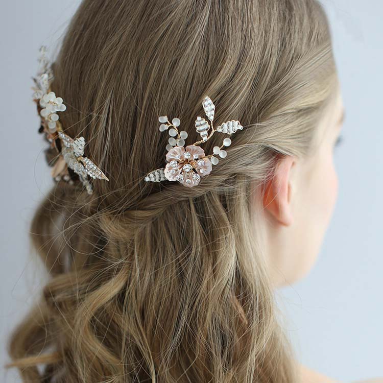 ウェディング 髪飾り 小物 髪ぴん ティアラ 王冠 ウェディング小物 フラワー リーフ ヘアバンド Uぴん 花嫁 発表会 演奏会 披露宴 ピンク ゴールド ヘア ヘッド アクセサリー