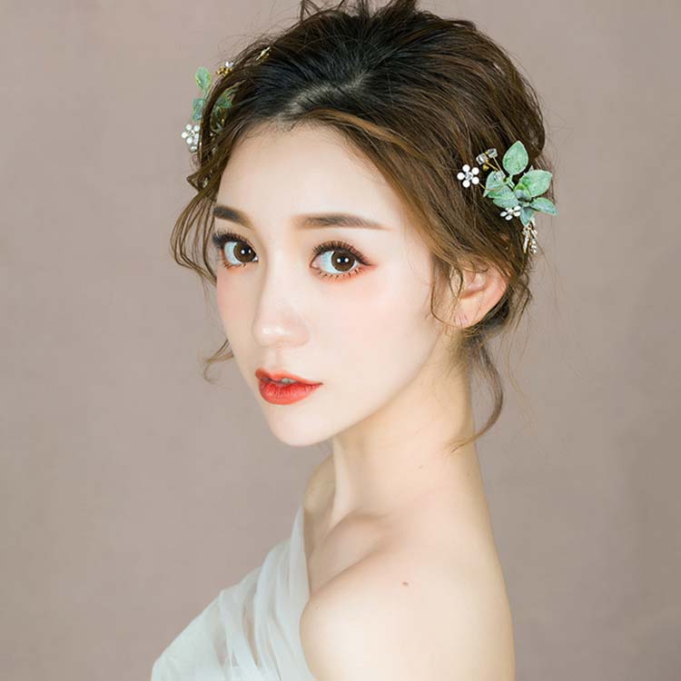 ウェディング 髪飾り 小物 ティアラ 王冠 カチューシャ ウェディング小物 髪ピン グリーン 2点セット ヘア ヘッド アクセサリー 結婚式 ブライダルアクセサリー 二次会 発表会 花嫁