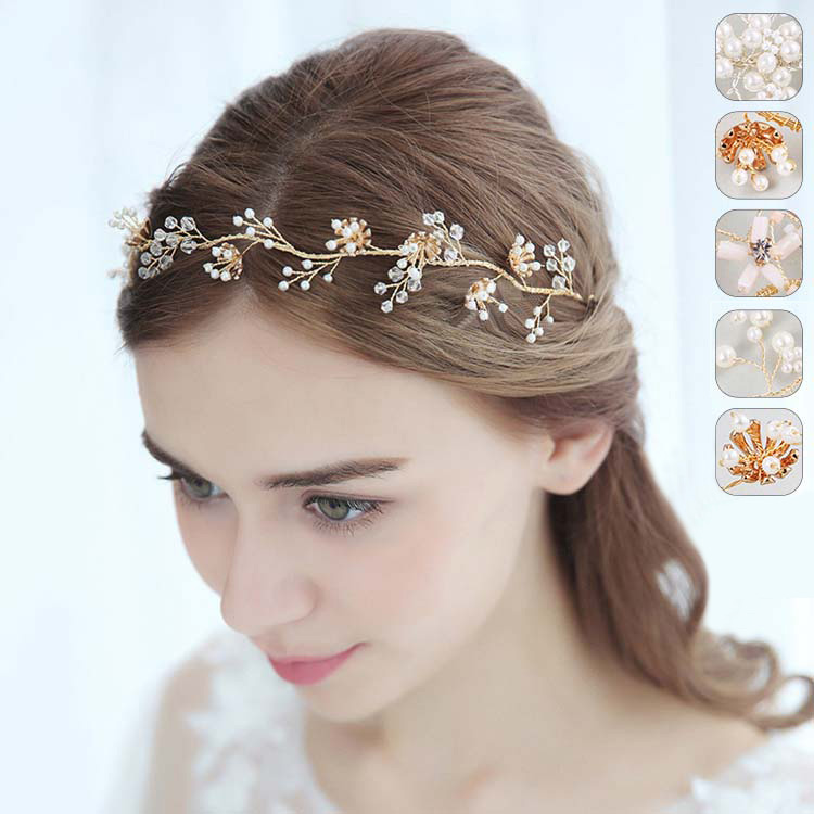 カチューシャ ウェディング 髪飾り 小物 ティアラ 王冠 花飾り ウェディング小物 ラインストーン 花嫁 パーディー 卒業式 二次会 優雅 おしゃれ ブライダル パール 金色 銀色
