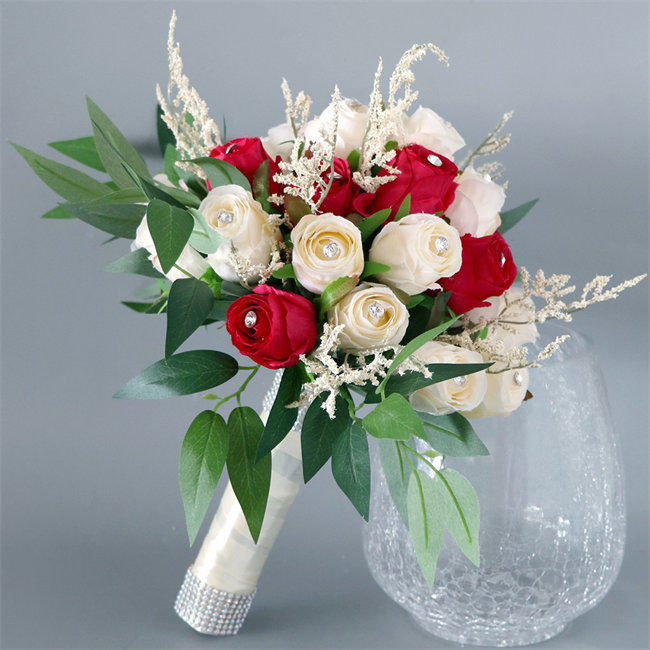 レッドローズウェディングブーケ 造花ブーケ ブライダルブーケ ラウンドブーケ トスブーケ 結婚式 花束向日葵