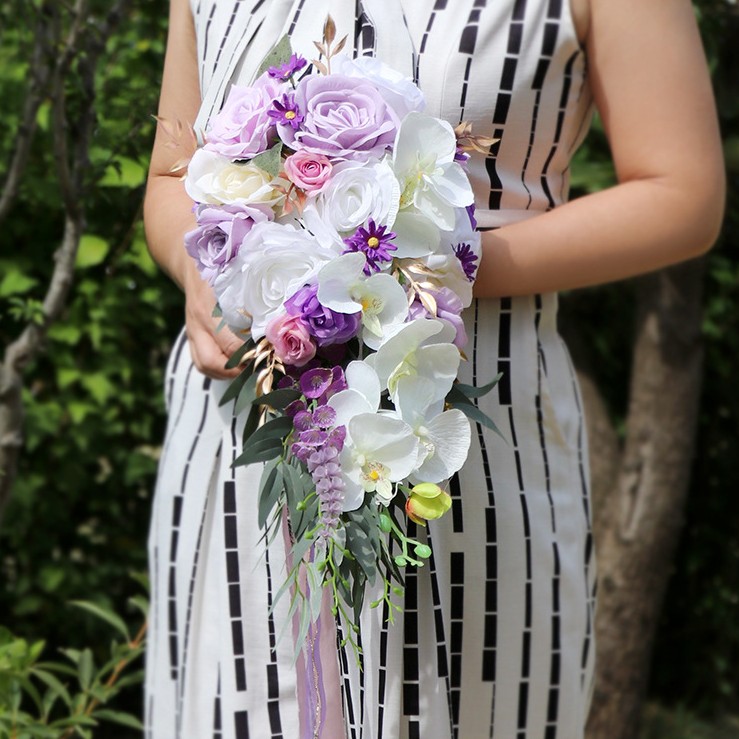 パープルウェディングブーケ 造花ブーケ ブライダルブーケ ラウンドブーケ トスブーケ 結婚式 花束 ドレスと合わせて 撮影ブーケ