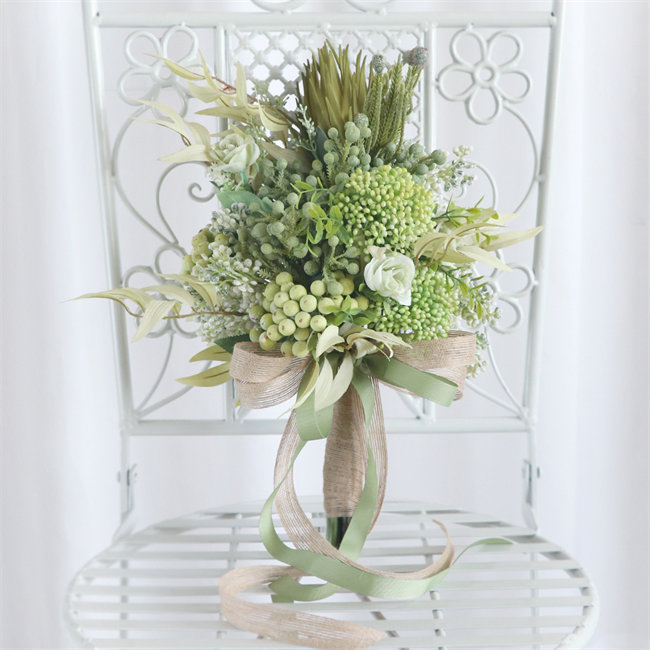 グリーンウェディングブーケ 造花ブーケ ブライダルブーケ ラウンドブーケ トスブーケ 結婚式 花束 ドレスと合わせて 撮影ブーケ