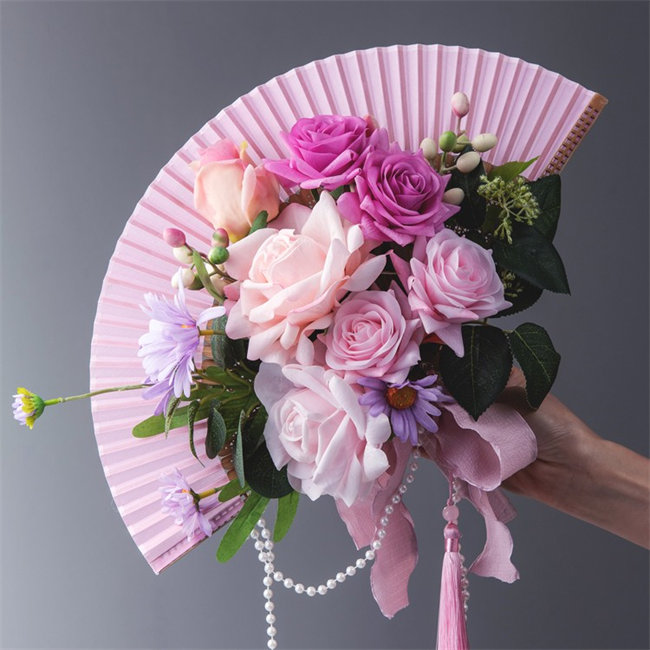 ピンク系和装花嫁のブーケ 扇子ブーケ 花のブーケ 春 花嫁 桜 扇子 和装婚用 ブーケ 和婚 着物 和小物 金 結婚式 神前式 前撮り 着物ドレス 和室インテリア 結婚式 和装 ダンス演出