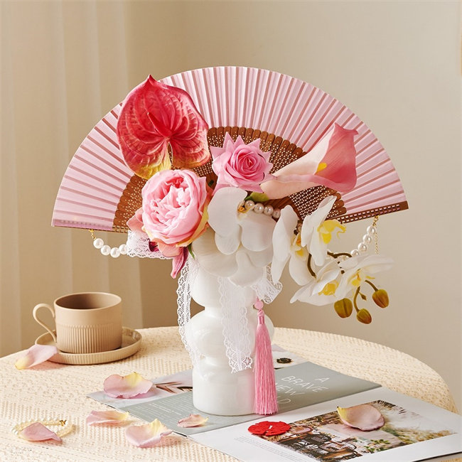 ピンク系和装花嫁のブーケ 扇子ブーケ 花のブーケ 春 花嫁 桜 扇子 和装婚用 ブーケ 和婚 着物 和小物 金 結婚式 神前式 前撮り 着物ドレス 和室インテリア 結婚式 和装