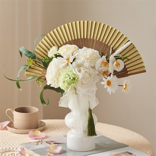ホワイト系和装花嫁のブーケ 扇子ブーケ 花のブーケ 春 花嫁 桜 扇子 和装婚用 ブーケ 和婚 着物 和小物 金 結婚式 神前式 前撮り 着物ドレス 和室インテリア 結婚式 和装 ダンス演出