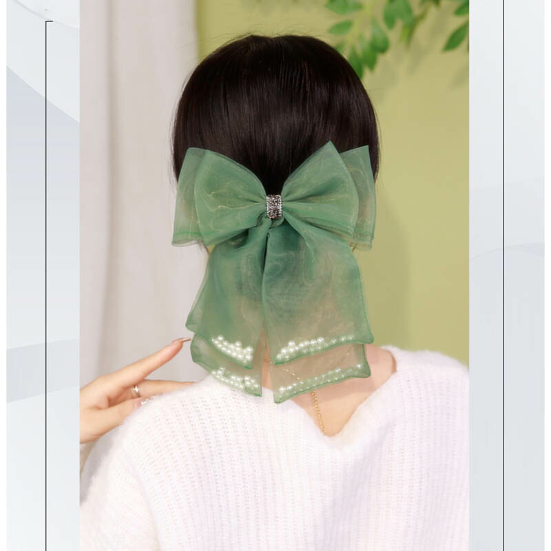 大きめ リボン シフォン 無地 パール 高品質ボリューム りぼん 結婚式 パーティ バレッタ 大き目 ヘアアクセサリー レディース 大きい ヘア飾り
