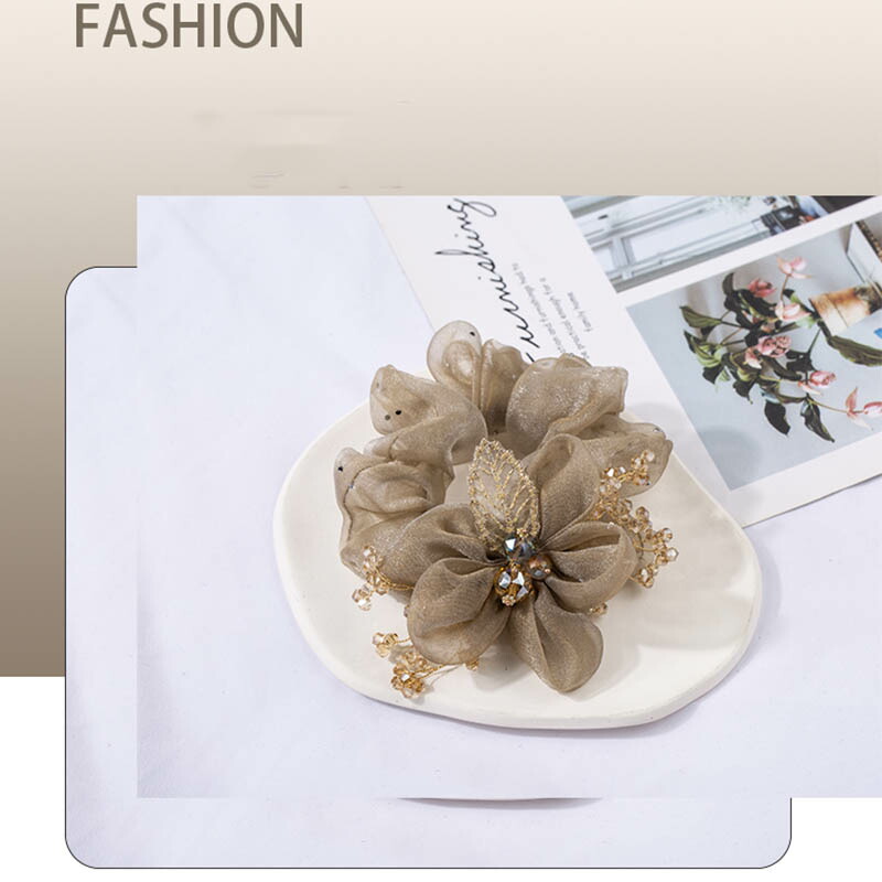 ヘアゴム ベージュ レディース ラインストーン シュシュ 髪飾り 高品質 きらきら キラキラ 無地 ヘアアクセ シンプル 柔から ヘアアクセサリー