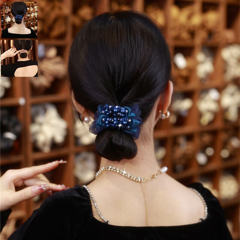 ヘアゴム ブルー ベージュ レディース ラインストーン シュシュ 髪飾り 高品質 きらきら キラキラ 無地 ヘアアクセ シンプル 柔から 発表会