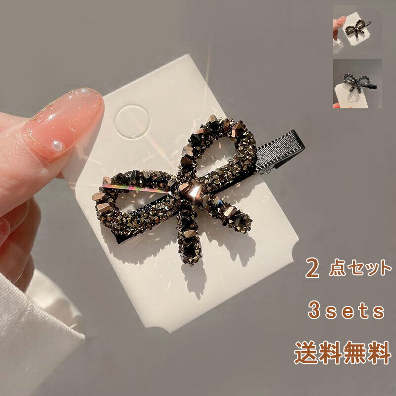 前髪クリップ 2点セット ヘアクリップ 2個 キラキラ ラインストーン 女性 アクセサリー ヘアアクセ ファッション小物 ミニバレッタ きらきら 蝶結び 美品 ミニ バレッタ ヘアピン レディース ク