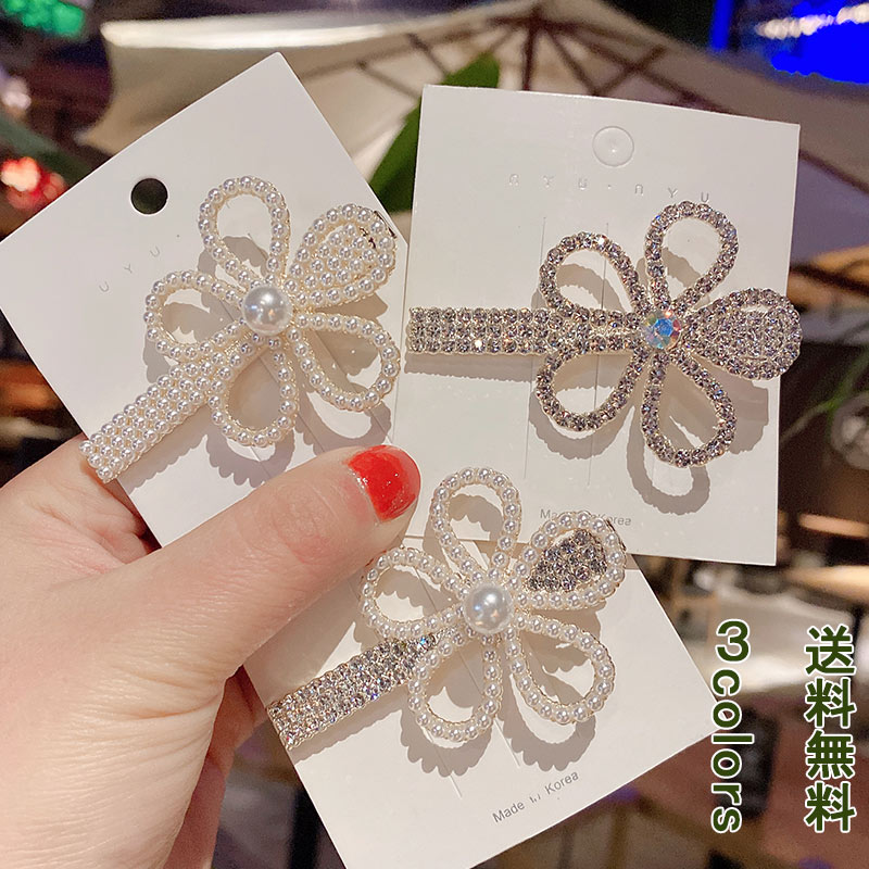 前髪クリップ ヘアクリップ ミニ キラキラ ラインストーン 花柄 フラワー ヘッドドレス 女性 アクセサリー ヘアアクセ ファッション小物 ミニバレッタ きらきら 蝶結び 美品 ヘアピン レディース