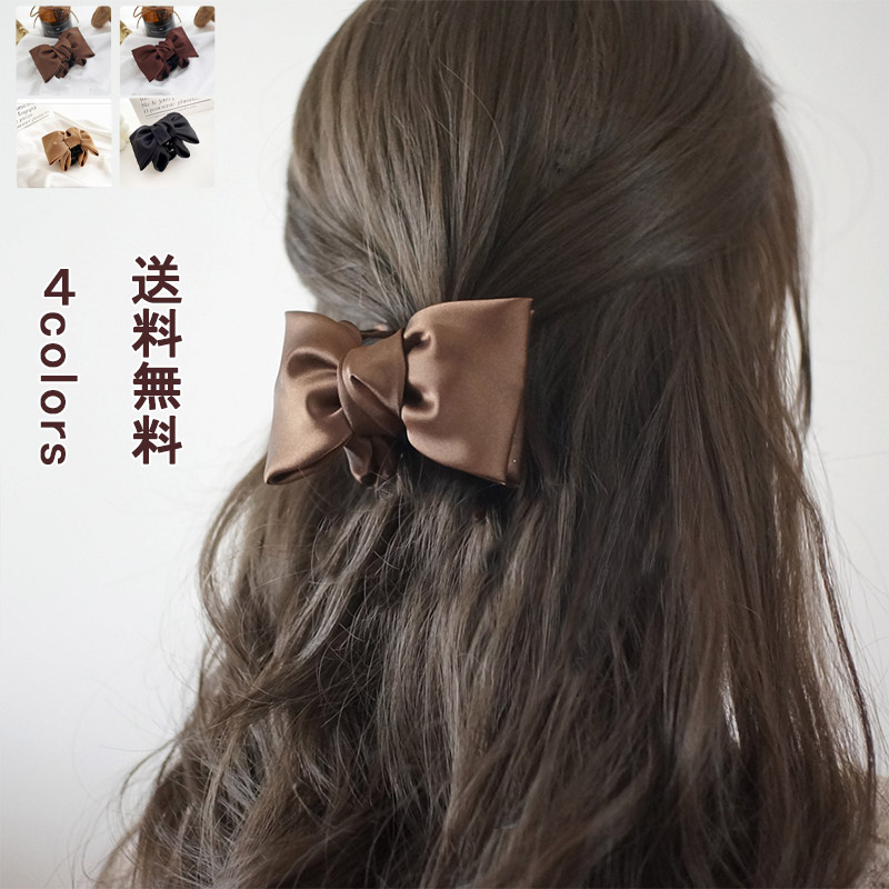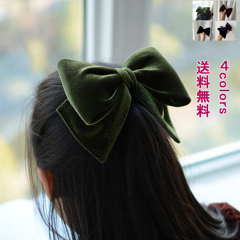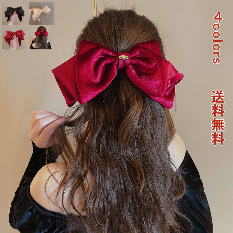 バレッタ ヘアアクセサリー カチューシャ リボン 髪 大き目 サテン ボリューム 韓国っぽ ベルベット レディース シンプル アクセサリー ファッション 可愛い 女性 雑貨 キレイめ おしゃれ 大人