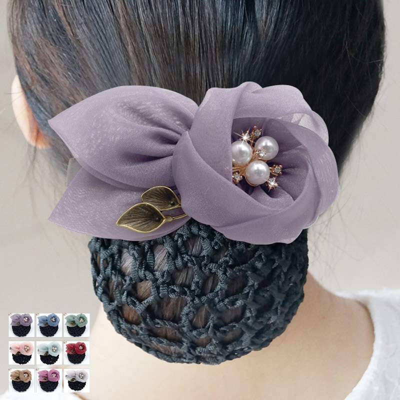 普段使い、オフィス、学校行事でも使える清楚なリボンバレッタ ヘアアレンジまとめ髪 シニヨンカバージュエリー アクセサリー レディースジュエリー アクセサリー ヘアアクセサリー バレッタ
