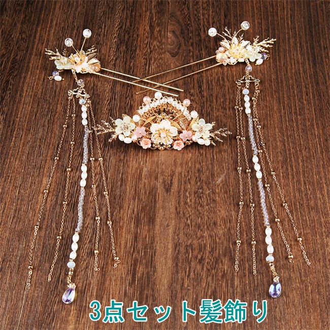 漢服髪飾り3点セット 中華風アアクセサリー かんざし ピアス 中国風古代宮廷王女皇后用 唐装漢服グッズ道具 ウエディング撮影結婚式グッズ チャイナドレス用コスプレ髪飾りコスチュームヘッドドレス豪華