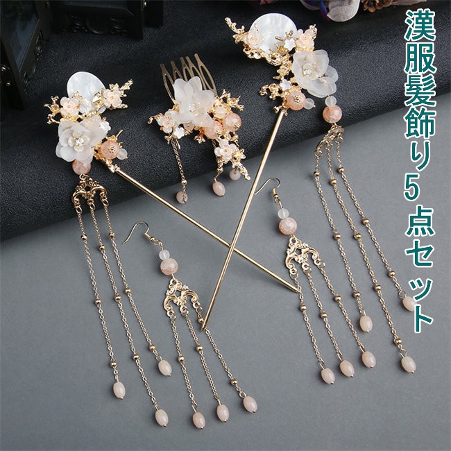漢服髪飾り5点セット 中華風アアクセサリー かんざし ピアス 中国風古代宮廷王女皇后用 唐装漢服グッズ道具 ウエディング撮影結婚式グッズ チャイナドレス用コスプレ髪飾りコスチュームヘッドドレス