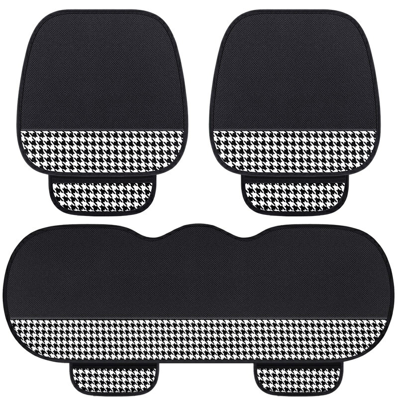 車用 シートカバーセット カーシートクッショ 前座席用2枚+後部座席用1枚 カーシートカバー 座布団 シートクッション 座席シート 3枚組 リンネル 千鳥格子 通気 旧汗 吸湿 四季に使用可