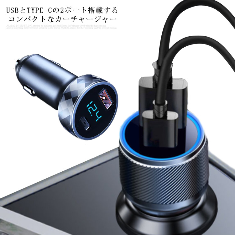 シガーソケット 車載充電器 USB Type-C 2ポート QC3.0 + PD3.0 2連 急速充電 カーチャージャー 54W スマホ iPhone Android コンパクト 軽量 おしゃれ 12