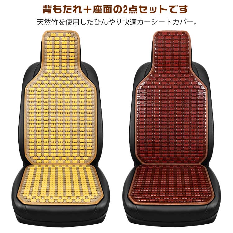 暑さ対策 天然竹 ひんやり カーシートカバー 背もたれ 2点セット 通気性抜群 夏 運転 涼しい 運転席 助手席 涼しい