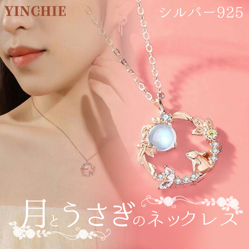 ネックレス 月 と うさぎ ギフト プレゼント 金属 アレルギー 対応 レディース シルバー 925 ローズゴールド クリスマス 誕生日 バレンタインデー 成人式 アクセサリー 贈り物 ジュエリー エ