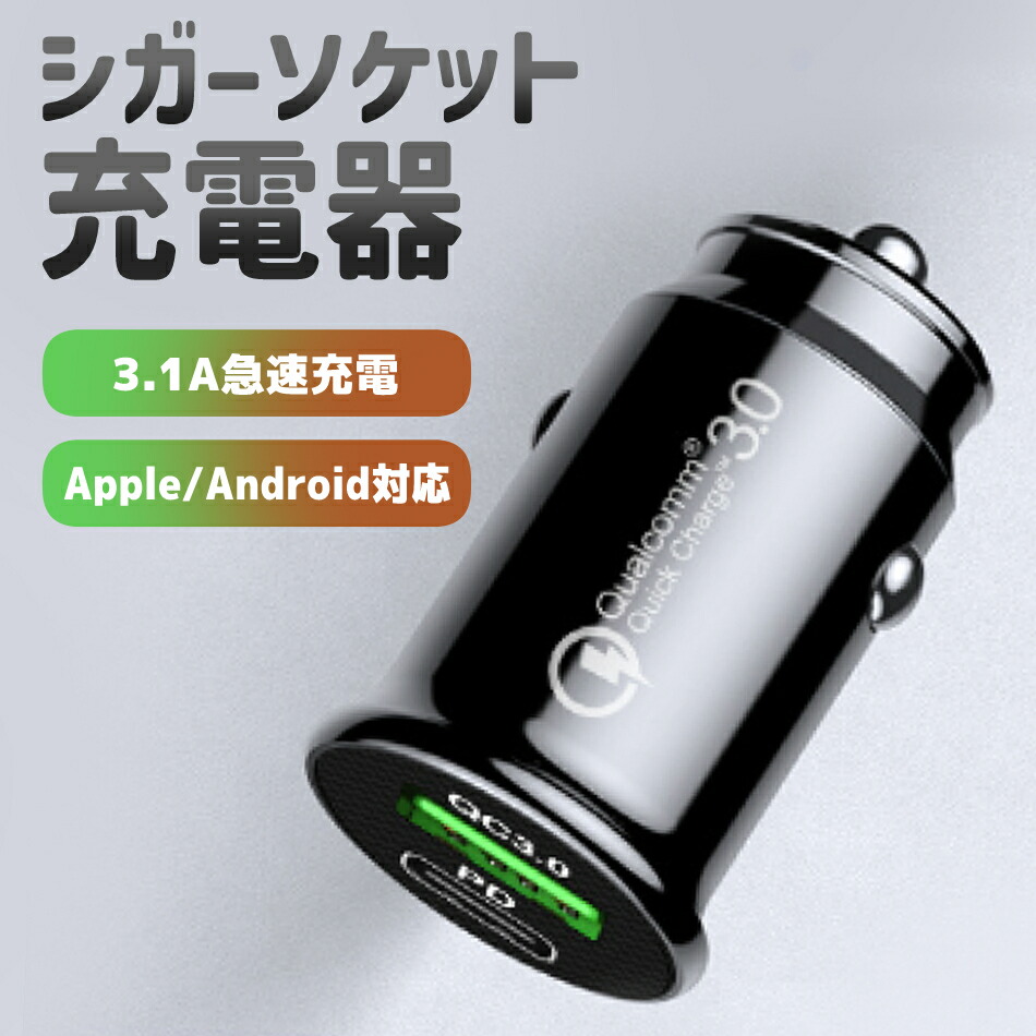 シガーソケット 充電 器 車 usb USB type- C 充電器 急速 カーチャージャー チャージャー iPhone スマホ PD アダプター ブラック 黒 レビュープレゼント