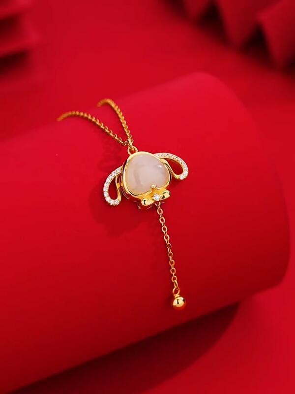 [シルバーサンダー] ネックレス レディース 可愛い ウサギモチーフ キューピッド 揺れる 最高級ジルコニア 14kゴールド 縁起物 ペンダント プレゼント ロマンチックジュエリー ギフト