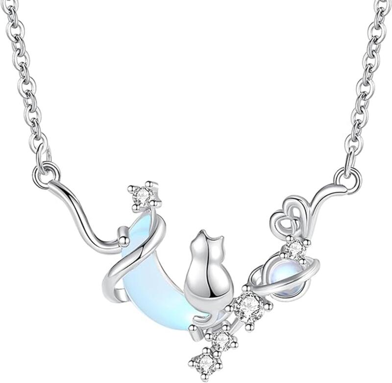ネックレス レディース 猫 月モチーフ ムーンストーン 瑠璃石 パワーストーン 誕生石 シルバー925 ジルコニア 調節可能 プレゼント アクセサリー ジュエリー ギフト バレンタインデー