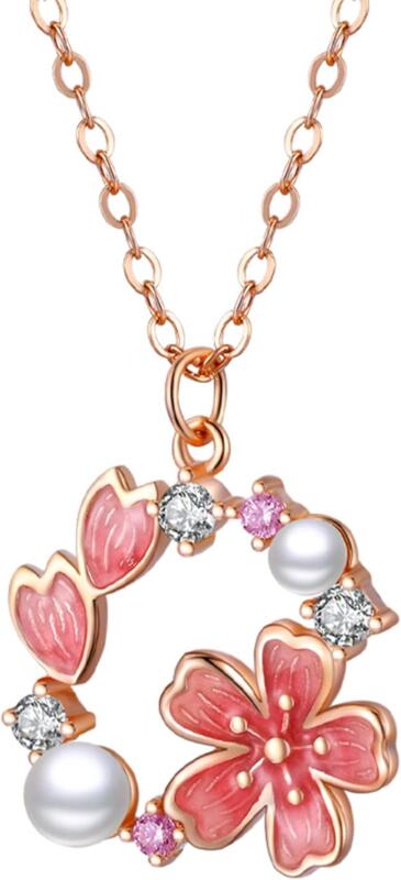 ネックレス レディース 桜モチーフ シルバー925 最高級ジルコニア 金属アレルギー対応 人気 母の日 お誕生日 プレゼント ペンダント 和風 アクセサリー ジュエリー バレンタインデー