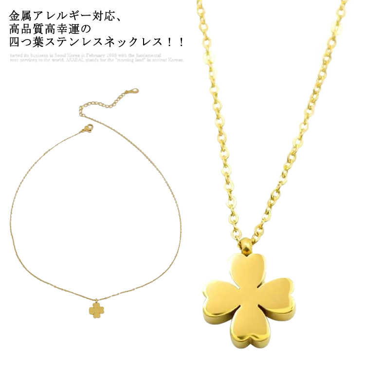 ネックレス ステンレス ゴールド 四つ葉 k18 コインネックレス チェーン 金属アレルギー ロングネックレス シンプル 立体 大人 上品 エレガント 華奢 フェミニン オフィス 通勤 会社 きれいめ