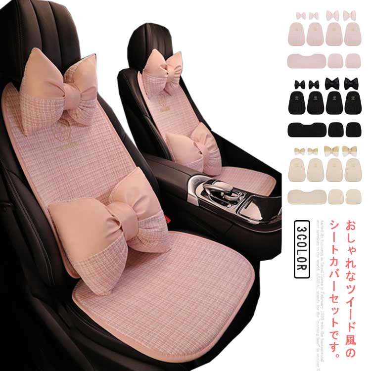 おしゃれ 軽自動車 車 車 カーシートカバー ツイード風 普通車 かわいい シートカバー 蒸れない 首枕 腰枕付き 全席セット 後部座席