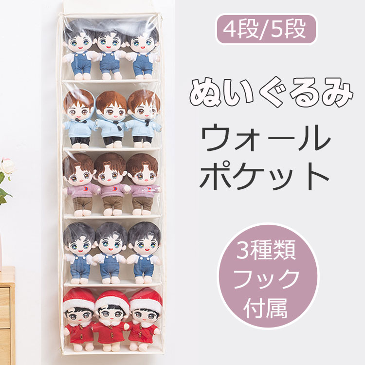ぬいぐるみウォールポケット ディスプレイ コレクションケース 4段 5段収納ケース 収納ボックス コレクション ぬいぐるみ 収納 見せる収 ウォールシェルフ 透明素材 新生活