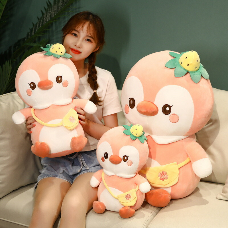 55cm ぬいぐるみ 全3カラー ストローベリー strawberry バッグつき 抱き枕 クッション インテリアペンギン penguin いちご 苺 イチゴ プレゼント 動物 可愛い 彼女に ふわふ