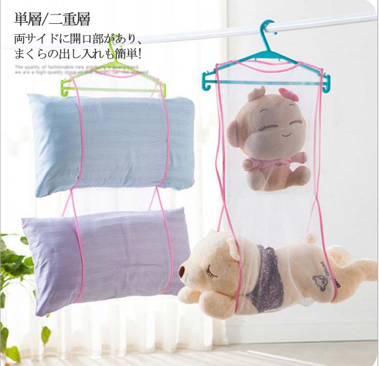 メッシュ コンパクト 吊り下げ 枕 まくら クッション 座布団 ぬいぐるみ 洗濯物 靴 物干しネット 2個セット ハンガー 枕干しネット 干しネット 通気性 折りたたみ 軽量 47*56