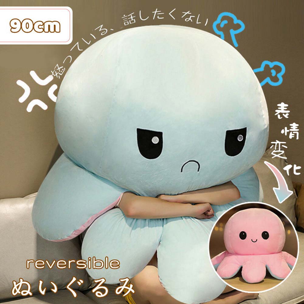 動物 おもちゃ 可愛い ふわふわで癒される 面白い 両面 怒る顔も笑い顔も タコ 抱き枕 ふわふわ 90 ギフト ぬいぐるみ 表情変化 お祝い 動物 プレゼント